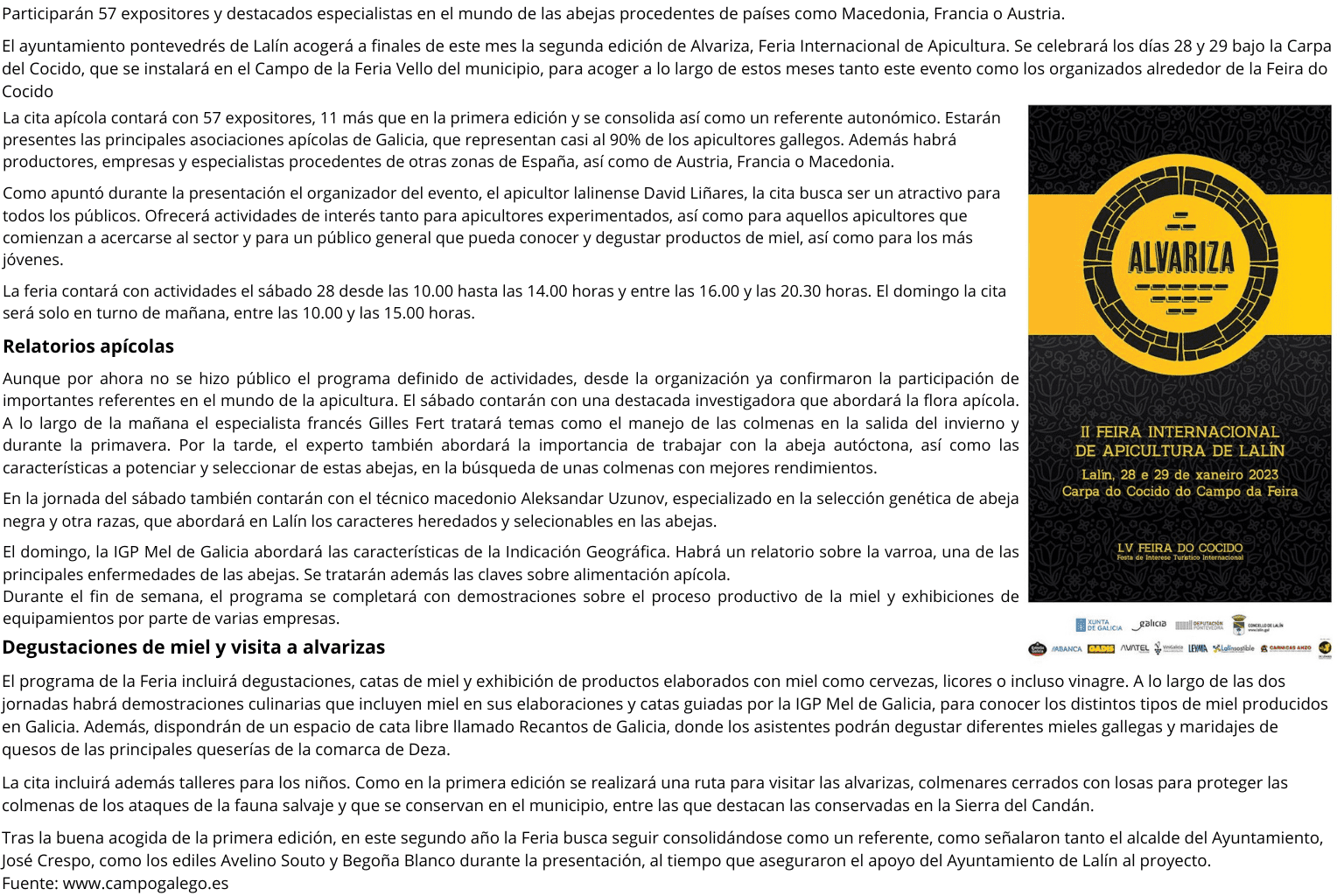 Lalín celebrará la segunda edición de la Feria Internacional de Apicultura | Mel de Liñares